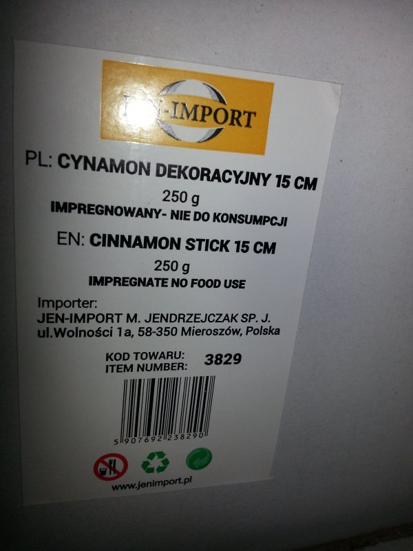 | CYNAMON 15 cm DEKORACYJNY 250g/opak około 25-30 szt | 15 cm | 250 |